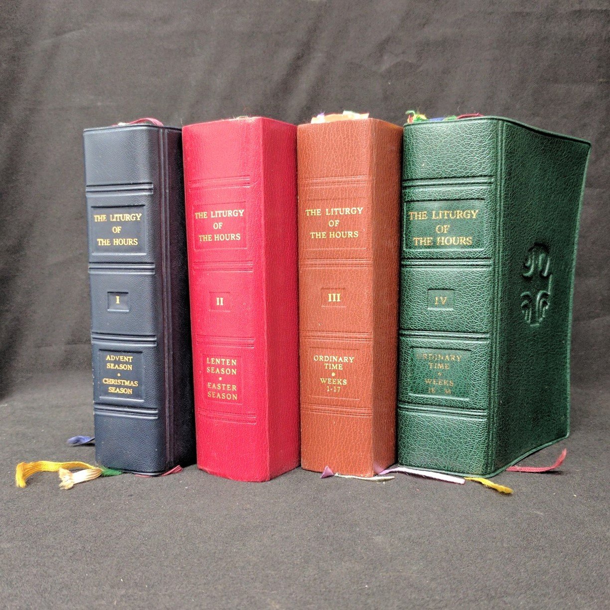 This complete four volume set of The Liturgy of the Hours was published by Catholic Book Publishing Corporation in 1976. These Divine Office Liturgy of the Hours readings are a perfect way to pray today everyday. Ad Bibles Rosaries Art More.